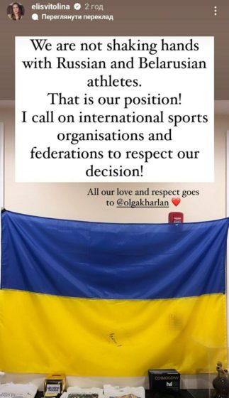 Еліна Світоліна, перша ракетка України, знову нагадала про позицію всіх українських спортсменів щодо відмови пожимати руки спортсменам з країн-агресорів. Вона поважає вчинок Харлан і закликає міжнародні спортивні організації поважати рішення українських спортсменів, які ведуть свою боротьбу в міжнародному спорті.