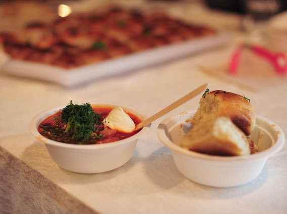 Гості фестивалю мали можливість посмакувати 12 видів борщу за традиційними рецептами з різних регіонів України (від борщу з чорносливом до зелених з кропивою), які готували волонтери-кухарі, а також 120 літрів борщу від головного шеф-кухаря заходу Вікторії Марценюк. Вікторія більше 10 років працює в видатних ресторанах Копенгагена, є членом Файно і була одним з ідеологів цього фестивалю.
